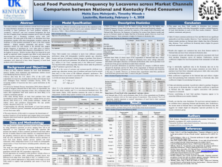 Woods, Timothy, Jairus Rossi, James Allen, and Graham Soley, “Comparative Wellness Metrics – CSA Shareholders versus Everybody Else”, Selected paper presented at the WERA-72 Regional Research for Agribusiness annual meeting, Las Vegas, NV, June, 2015.